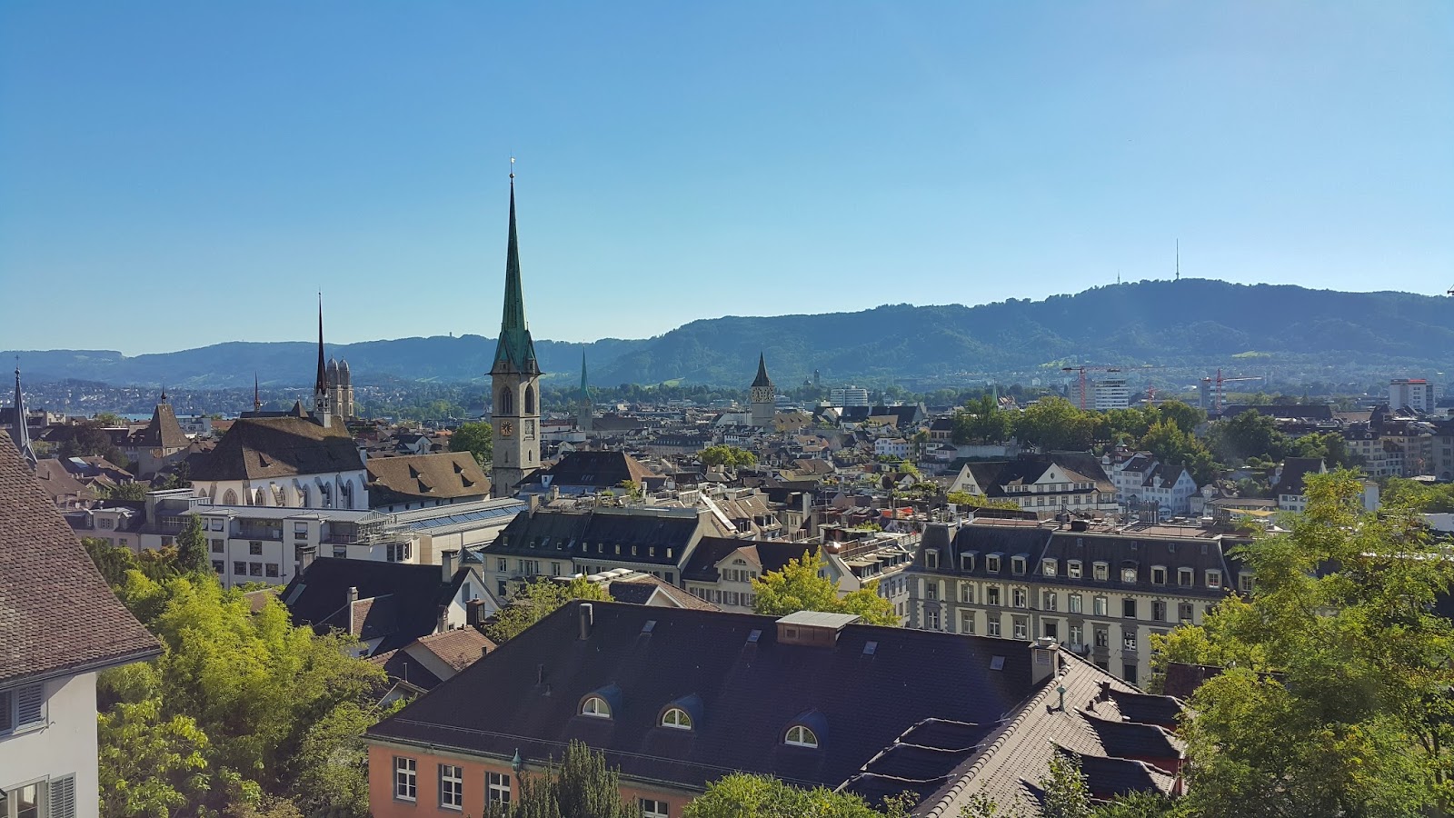 Zürih şehir merkezi tepeler tarafından çevrilmiş konumda. Waidberg tepesinden şehrin panoraması seyredebilirsiniz.
